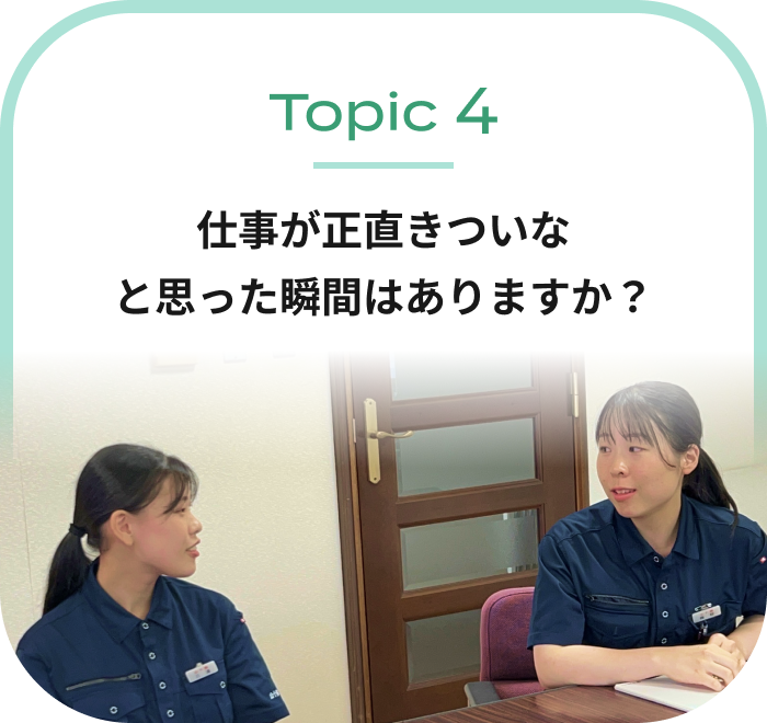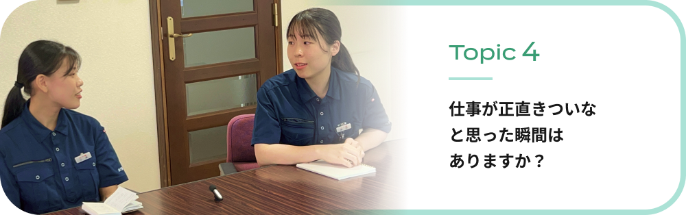 先輩と「しんどいね」と言い合いながらも、一緒に頑張っています。